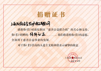 捐贈證書 周浦鎮(zhèn)人民鎮(zhèn)府
