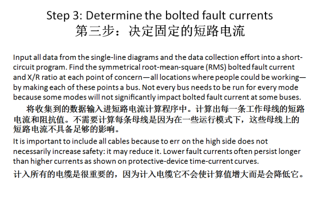 弧閃危害分析應(yīng)該是短路電流計(jì)算和繼電保護(hù)協(xié)調(diào)的一項(xiàng)后續(xù)工作。使用短路電流計(jì)算的結(jié)果可以決定短路電流的瞬時(shí)值,設(shè)備額定遮斷能力和短路酎受電流值。 通過繼電保護(hù)協(xié)調(diào)的結(jié)果可以得出切斷過負(fù)載電流和短路電流的時(shí)間。短路電流計(jì) 算和繼電保護(hù)協(xié)調(diào)為進(jìn)弧閃危害分析提供了必要的數(shù)據(jù)。通過弧閃危害分析,可以得出弧閃保護(hù)的安全邊界長度和在操作距離上的電弧能墩。