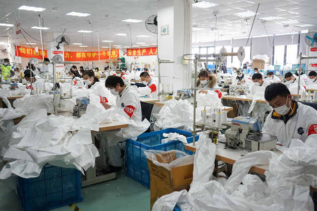 “我去年剛?cè)肓它h,看到這么多醫(yī)護(hù)人員奮戰(zhàn)在抗疫線,很感動(dòng),所以就想為他們做些什么,用實(shí)際行動(dòng)向他們致敬。”一件防護(hù)服的流程大致是:裁原料,縫紉,剪線頭,檢驗(yàn),貼商標(biāo),包裝,清點(diǎn),裝箱。當(dāng)志愿者的天,顧祥舜分配到的工作就是給防護(hù)服“剪線頭”。