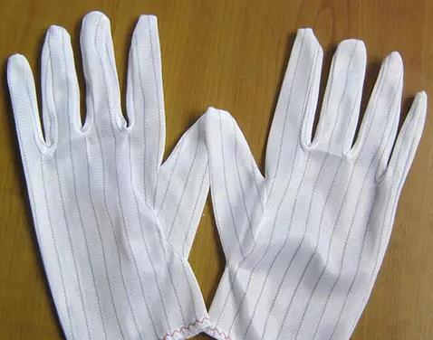 含導(dǎo)電纖維的手套使聚積在手上的靜電很快消失。有聚氨酯或聚乙烯涂層的手套主要是不易產(chǎn)生塵埃和靜電。這些產(chǎn)品主要用于弱電流、精密儀器的組裝、產(chǎn)品檢驗(yàn)、電子產(chǎn)業(yè)、印刷、各種研究機(jī)關(guān)的檢驗(yàn)工作等。