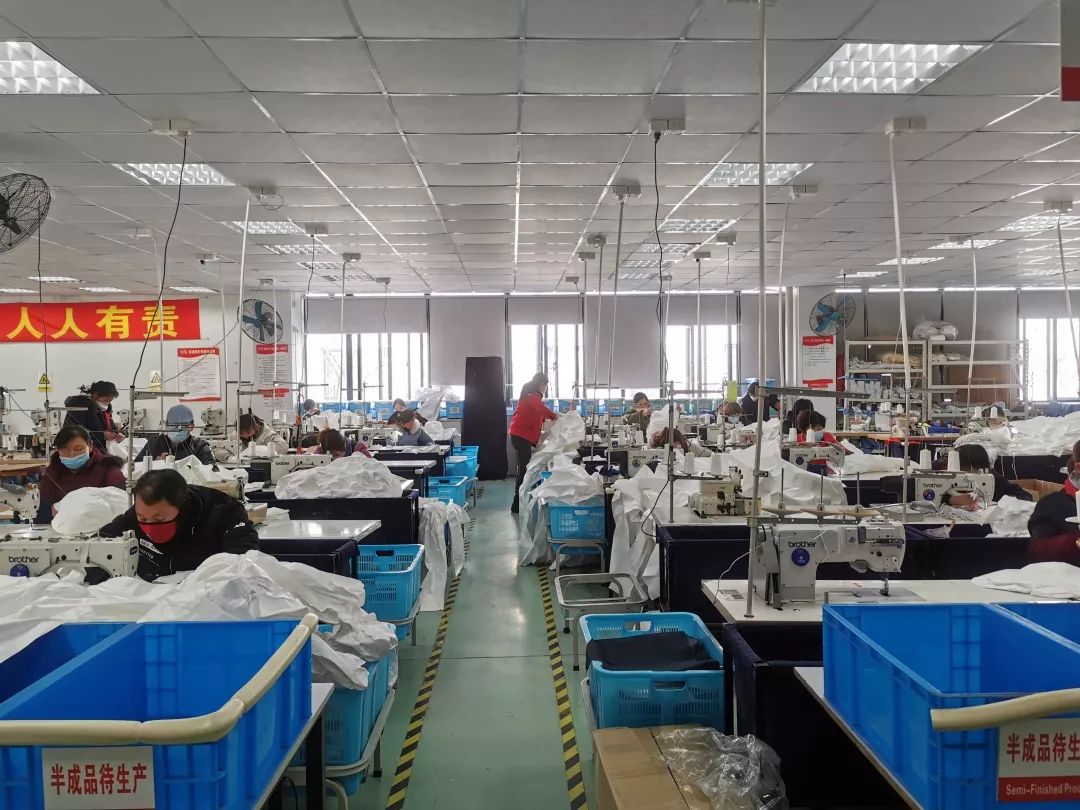 最終走訪了3家企業(yè),才將15臺(tái)拷邊機(jī)湊齊。當(dāng)晚,周浦鎮(zhèn)產(chǎn)業(yè)園連夜把機(jī)器運(yùn)回誠(chéng)格工廠。深夜3點(diǎn),廠房消毒完畢,設(shè)備組裝調(diào)試維修完畢,打樣確認(rèn)準(zhǔn)備生產(chǎn)完畢。