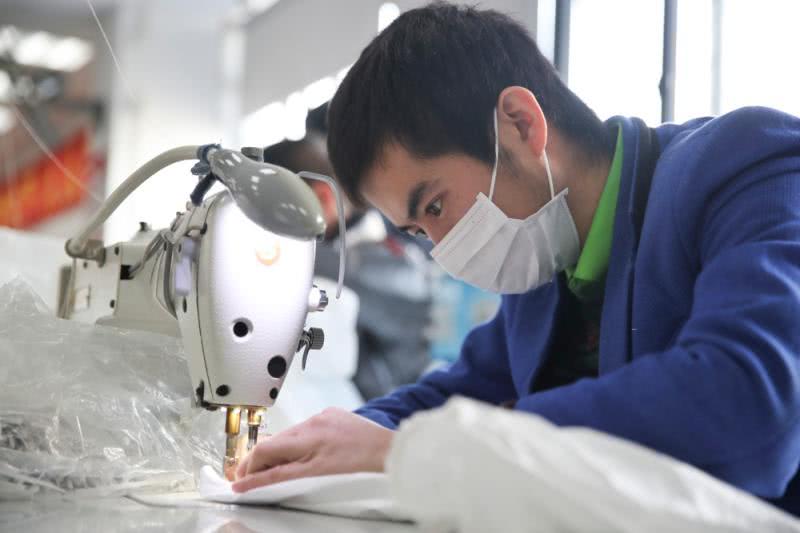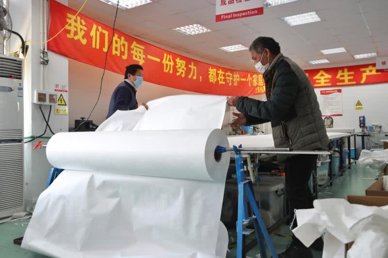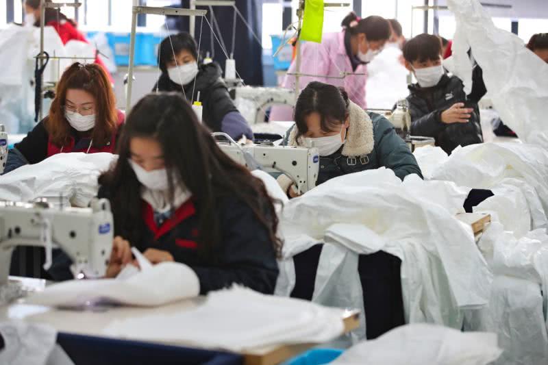 上海誠(chéng)格安全防護(hù)用品有限公司防護(hù)服生產(chǎn)車間經(jīng)過(guò)了幾天的設(shè)備調(diào)整,50多個(gè)車位,70多名工人正在加班加點(diǎn)趕制醫(yī)用防護(hù)服。