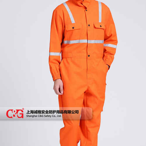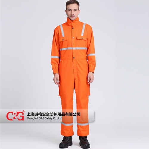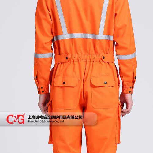 產(chǎn)品描述:200g/㎡,阻燃防護服采用杜邦™Nomex® IIIA面料制作。立領設計,兩個胸帶皆為雙線縫制,兩個后褲袋及斜插袋,前襟銅拉鏈加內(nèi)置四合扣封閉,橡皮帶收腰,采用配色阻燃線雙線埋夾縫制。
